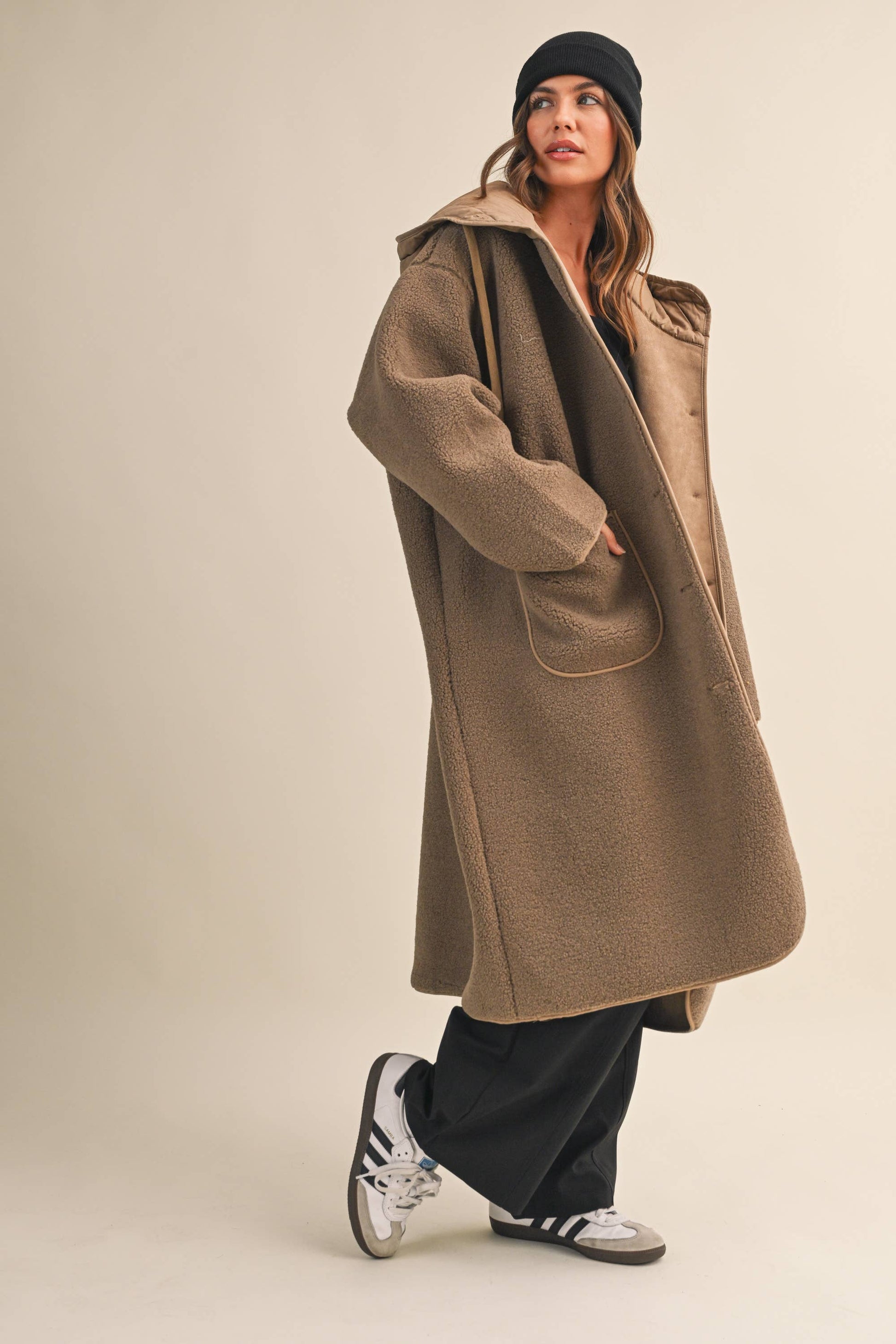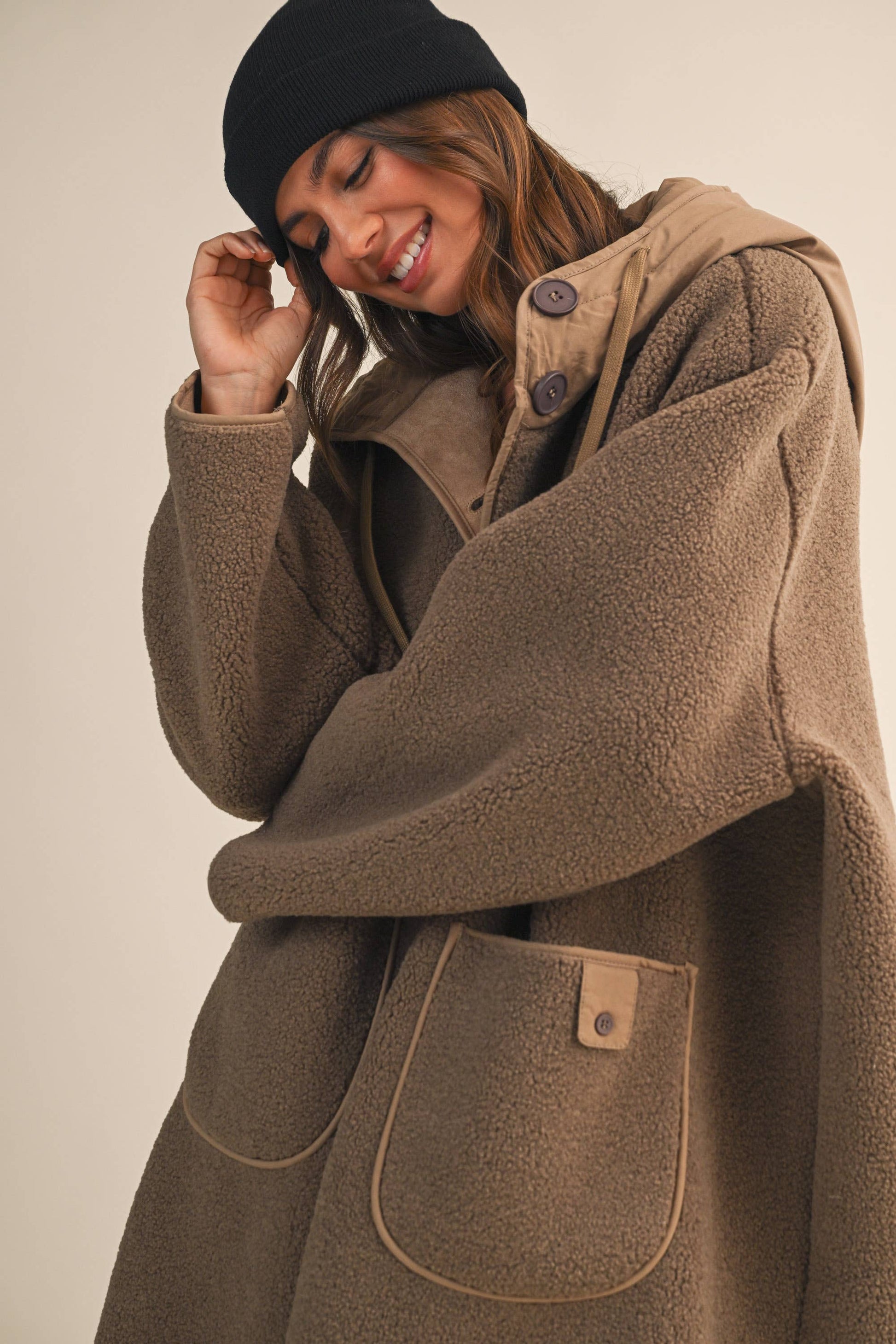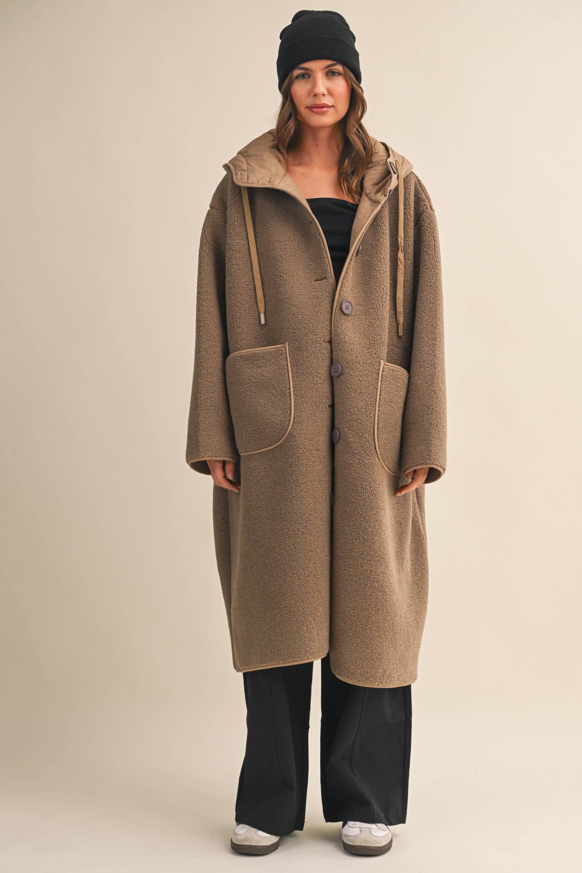 The Get Cozy Sherpa Coat is constructed from high-quality sherpa fabric, providing superior warmth and comfort. When you need a coat that is oversized warm, especially for all of the errands!