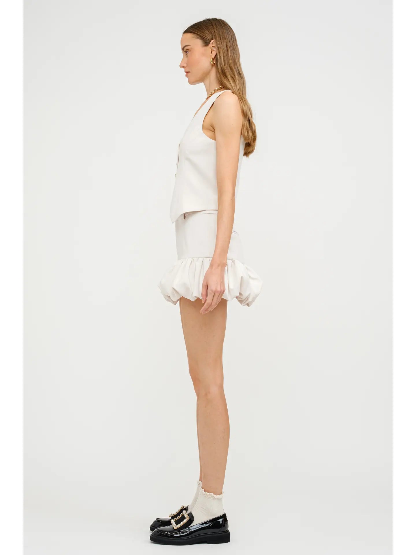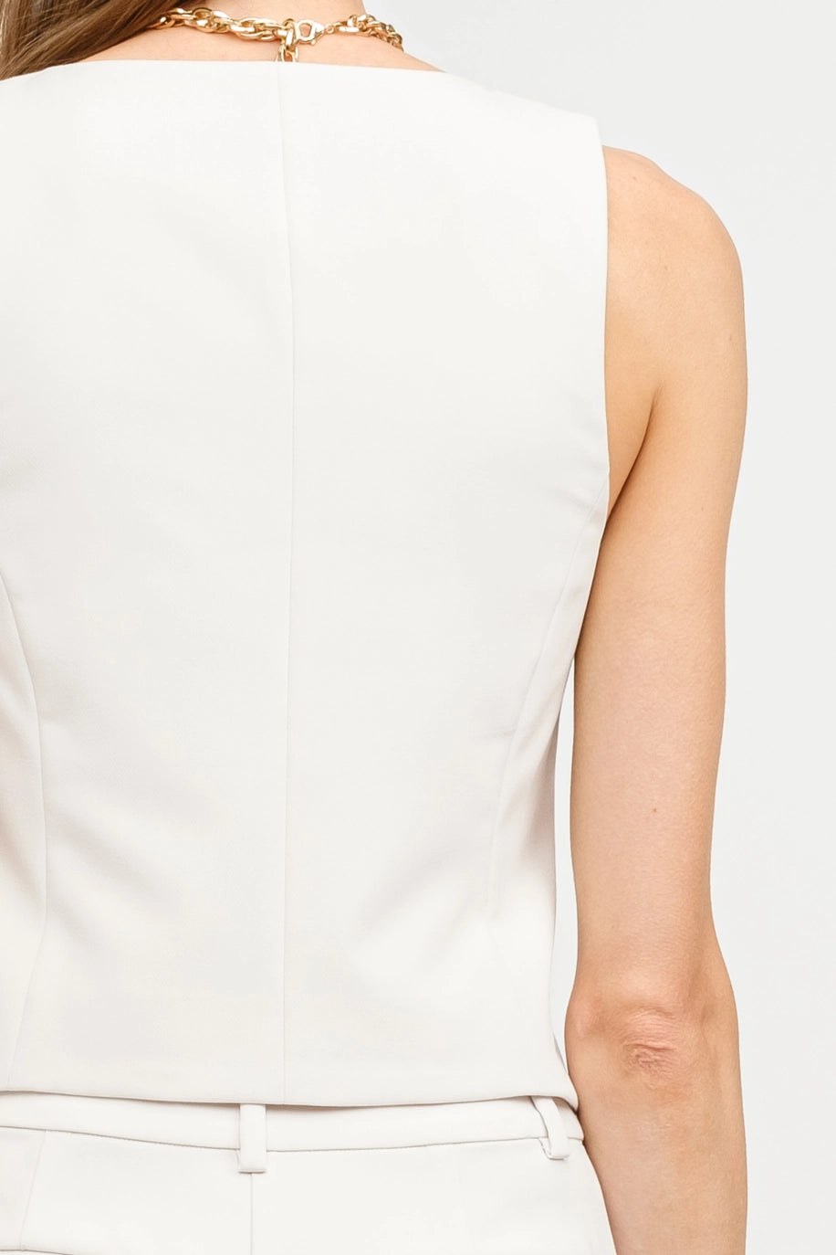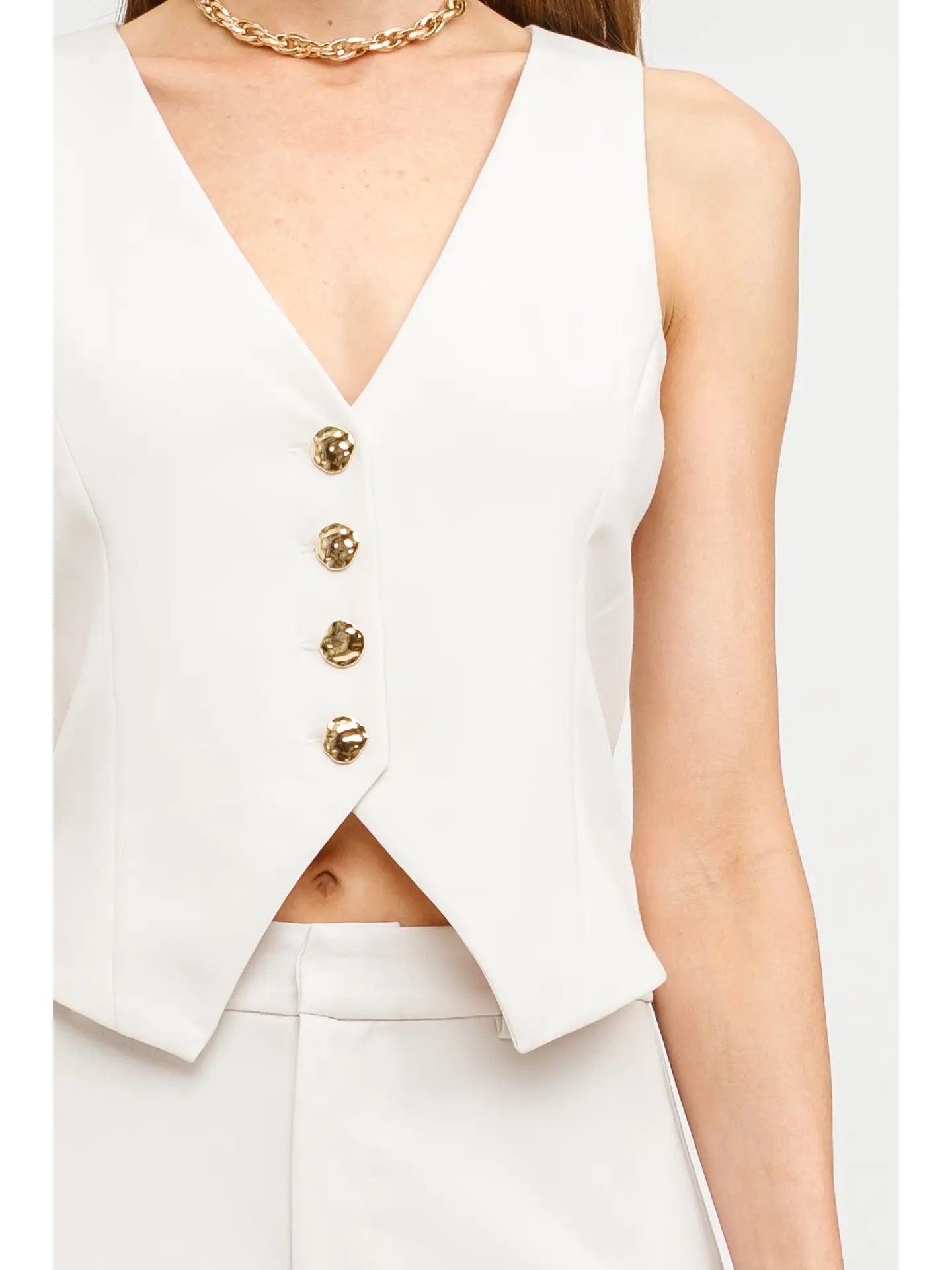 Elevate your look with the sophisticated Scarlett Vest. Crafted with exquisite tailoring and adorned with gold button details, this premium piece exudes elegance and luxury. Perfect for adding a touch of refinement to any outfit. Channel your inner exclusivity with this must-have wardrobe staple.
