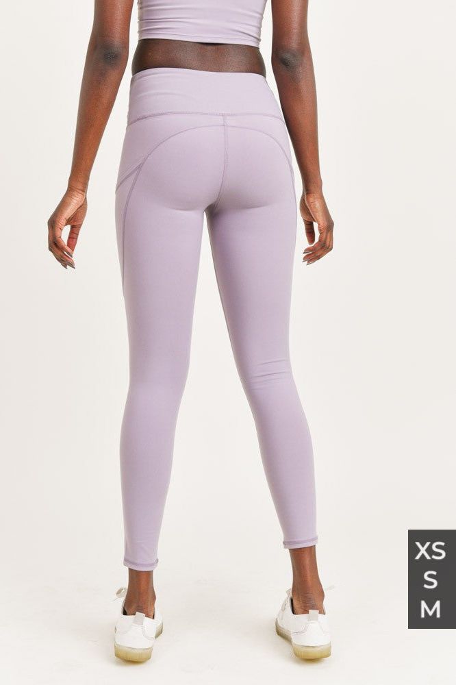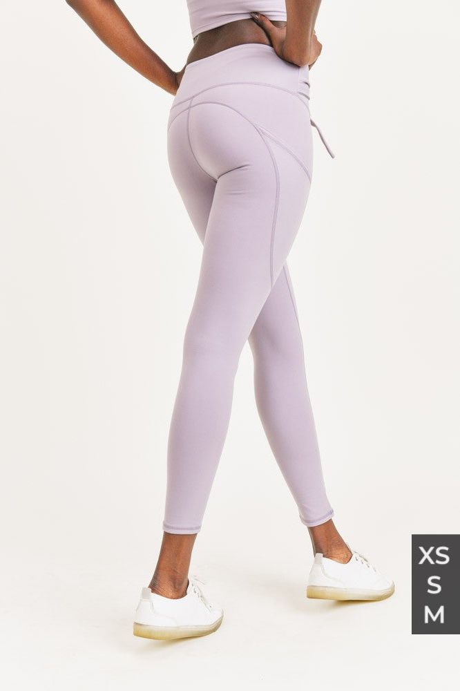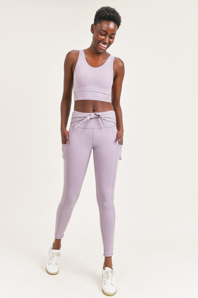 This essential tummy control legging features functional side pockets as well as a unique, tie-accent on the front so you can adjust the tightness of the waist band.Plus the lavender color will be perfect for spring and summer!